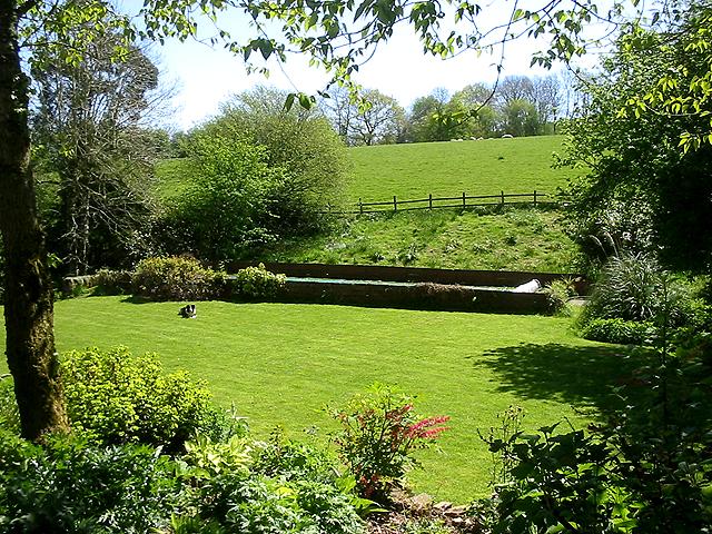 The garden, the pool is just beyond the lawn, our fields rise on the far side of the valley.